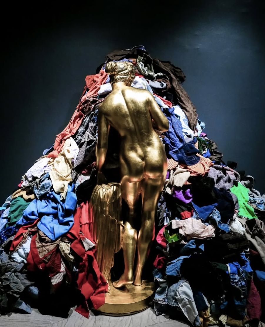 Artist Michelangelo Pistoletto purchased a plastic Venus sculpture at a garden shop in 1967, and placed it in his studio facing a pile of rags. The clash of the Roman goddess of love and beauty with the discarded rags became a hallmark work of the Arte Povera movement.