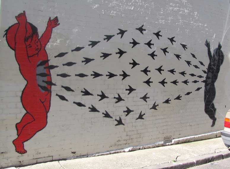 “Migration is a celebration of my Chinese and Aboriginal heritage. Both my Chinese and Aboriginal grandparents could not celebrate their cultures for fear of persecution. I feel a great responsibility to celebrate my cultures for my ancestors that lived before me. The figures are based on myself and the birds are magpies. Magpies are important symbols, for both cultures. In Aboriginal culture a magpie is a term used for a person who is a half cast (black and white parents). The magpie is a Chinese symbol of marriage and prosperity. I am blessed to be alive in this day and age where cultural diversity can be celebrated in Australia, so I created an artwork to express these feelings”... Wing